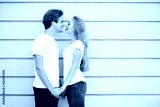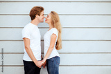 Young fashion stylish couple stand on streets of the city in summertime