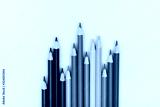 Color pencils in a row on yellow background.