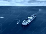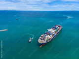 Aerial top eye view freighter container cargo import export on the sea from drone