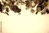 Wine composition on rustic background
