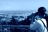 Woman looking through a coin operated binoculars