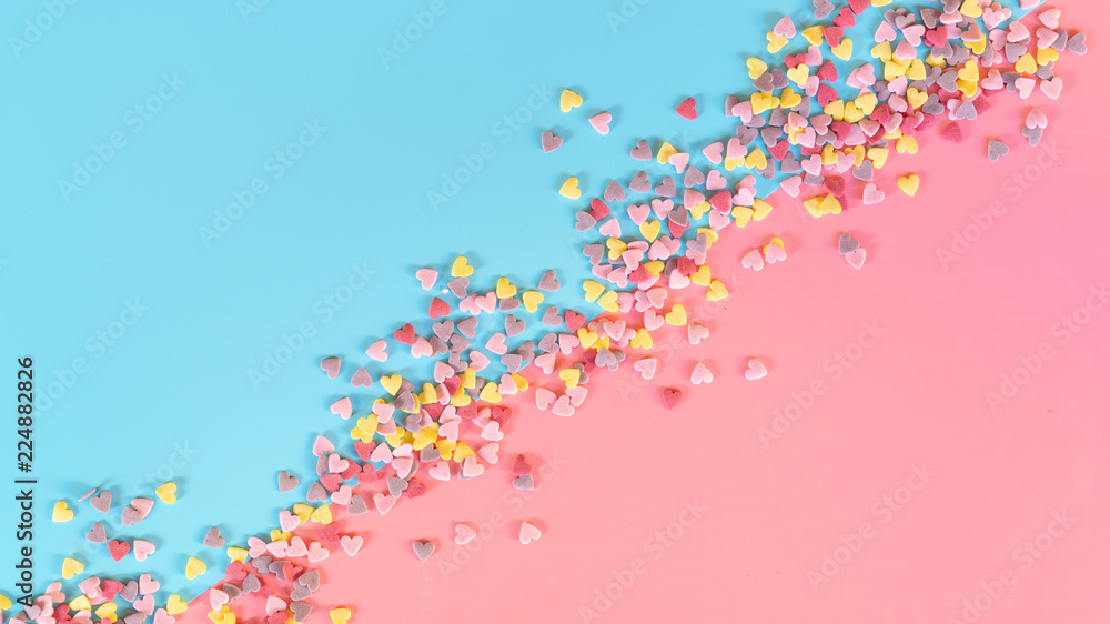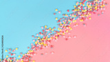 Candy frame background. Copy space concept . Flat lay, top view. Candies on pastel turquoise background.