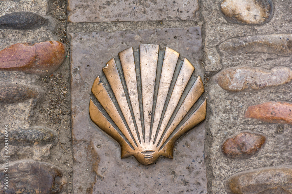 Symbol of the camino de santiago as it passes through Estella (Navarra), Spain
