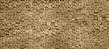 Dark Brown Or Red Old Brick Wall, Panorama. Brickwork Background Or Texture. Copy Space For Text Or Banner.