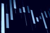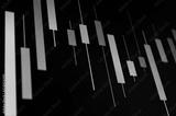 Black and white exchange financial schedule with Japanese candles, out of focus