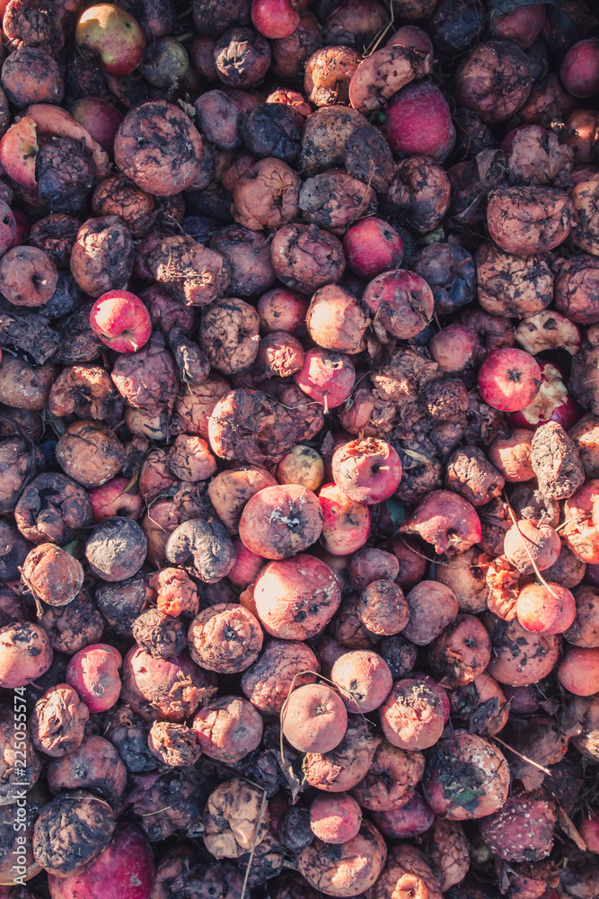 A large pile of rotten apples, the concept of a spoiled harvest