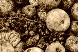 Pile of rotten apples and grapes, the concept of a spoiled harvest