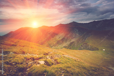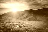 Scenic view of mountains, autumn landscape with colorful hills at sunset. Filtered image:cross processed vintage effect.