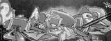Fragment of graffiti drawings. The old wall decorated with paint stains in the style of street art culture. Colored background texture in purple tones