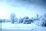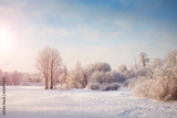 Beautiful trees in winter landscape in early morning in snowfall