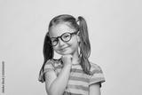 beautiful cute little girl posing and smiling to camera with her hand under chin