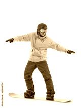 Snowboarder kipping the balance