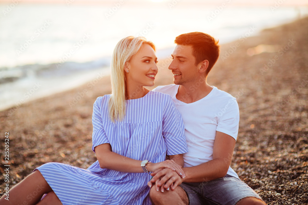 Young happy couple on seashore.