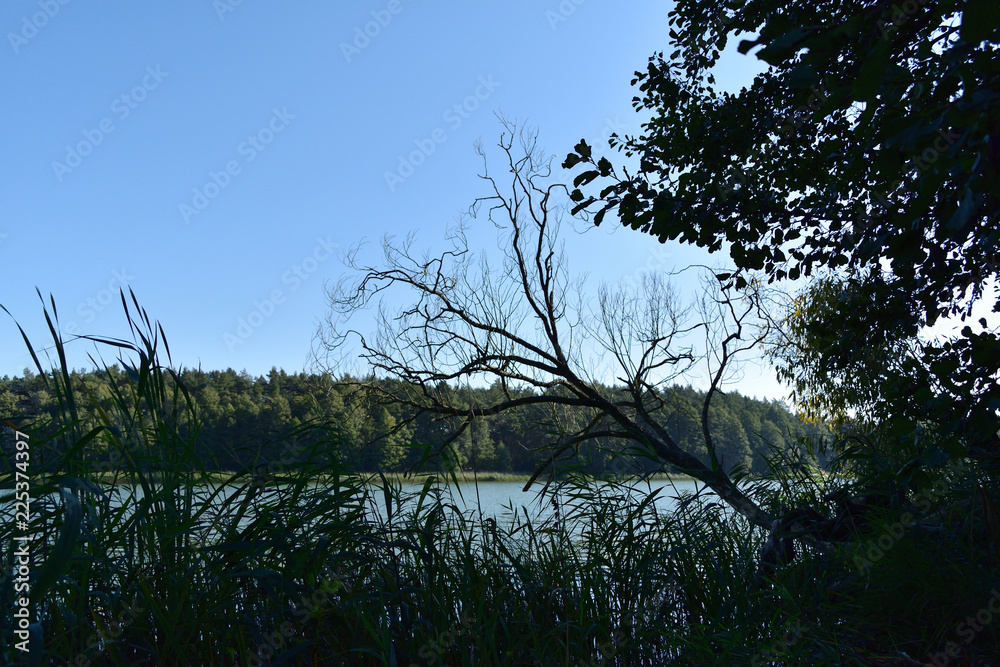 piękne suche drzewo nad jeziorem