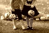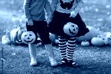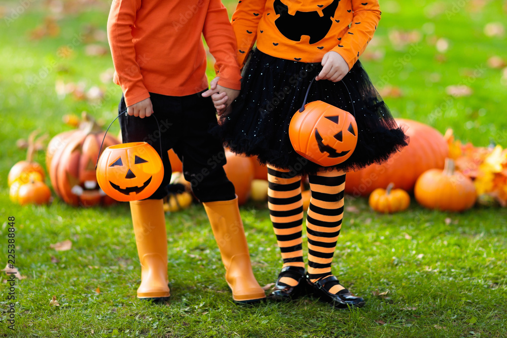 Kids with pumpkins in Halloween costumes