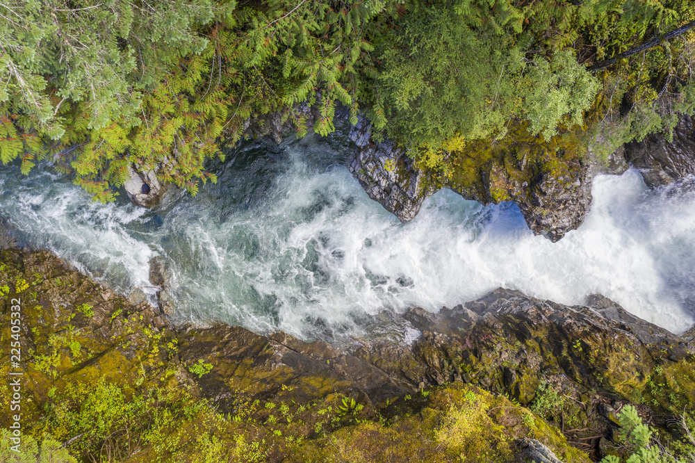 Aerial view of a river and waterfall at Little Qualicum Falls, Canada