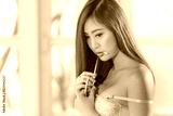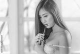 sexy lady asian in underwear on bedroom headshot emotion on the eye