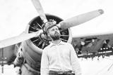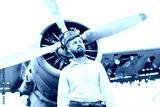 a man on the background of an old plane