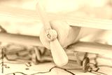 Journey on a small toy wooden plane
