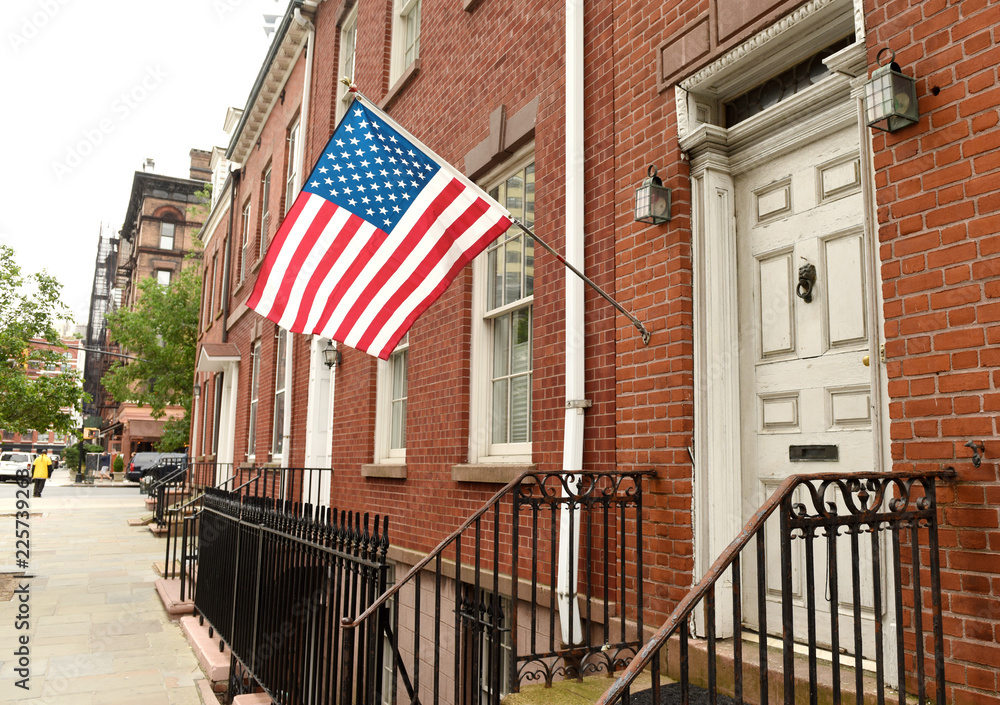 American flag on a building in Brooklyn in New York, USA