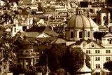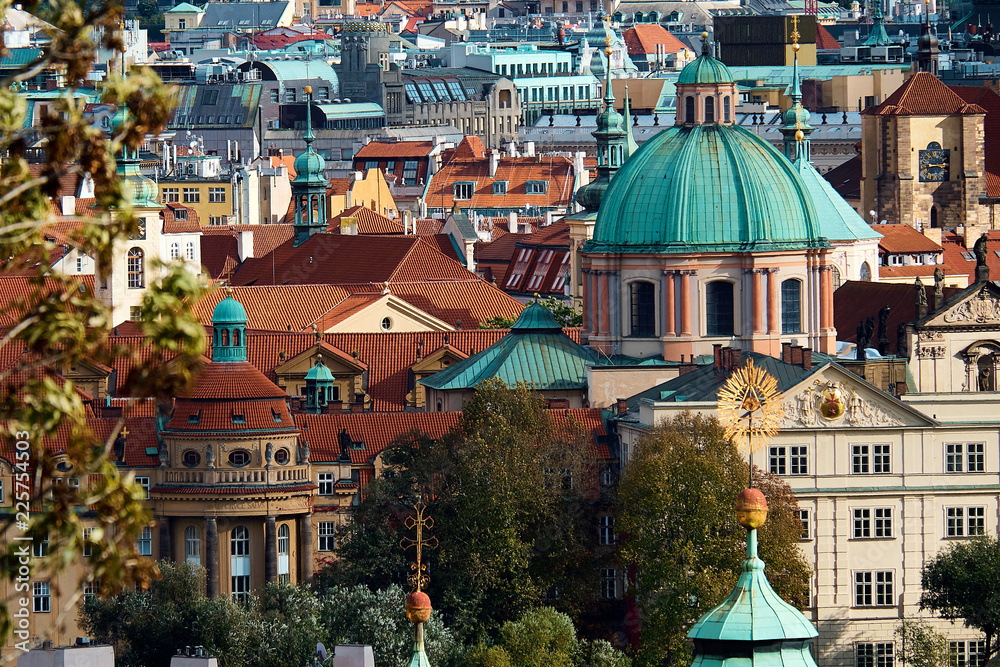Sunset view at Square of the Knights of the Cross with heavy clouds, Prague, Czech republic