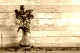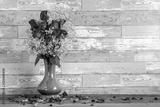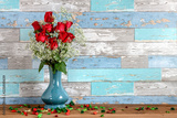 flowers arragement in vase of red rose with vintage old wooden back drop