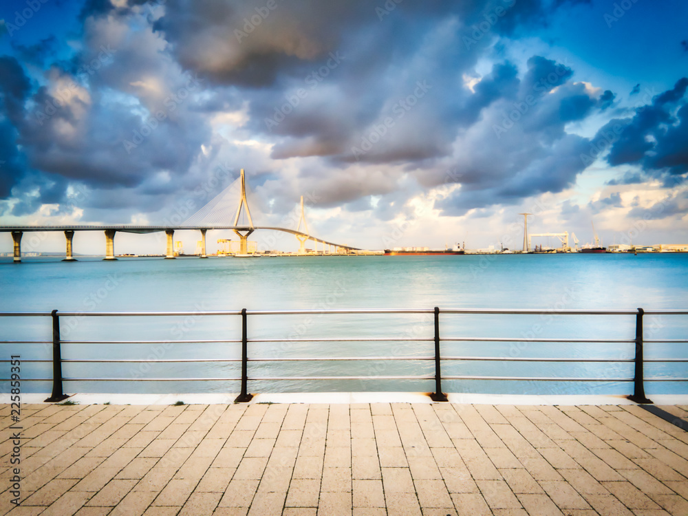 The bridge of the Constitution of 1812 seen from the coast of Cadiz, Spain