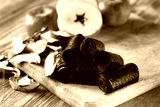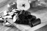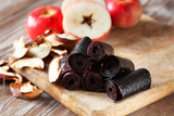 Traditional russian healthy sugar free fruit sweets for winter. Apple roll paste dessert and slices of dried apple