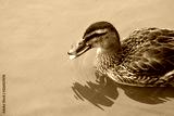 Duck with a deformed beak in a polluted lake