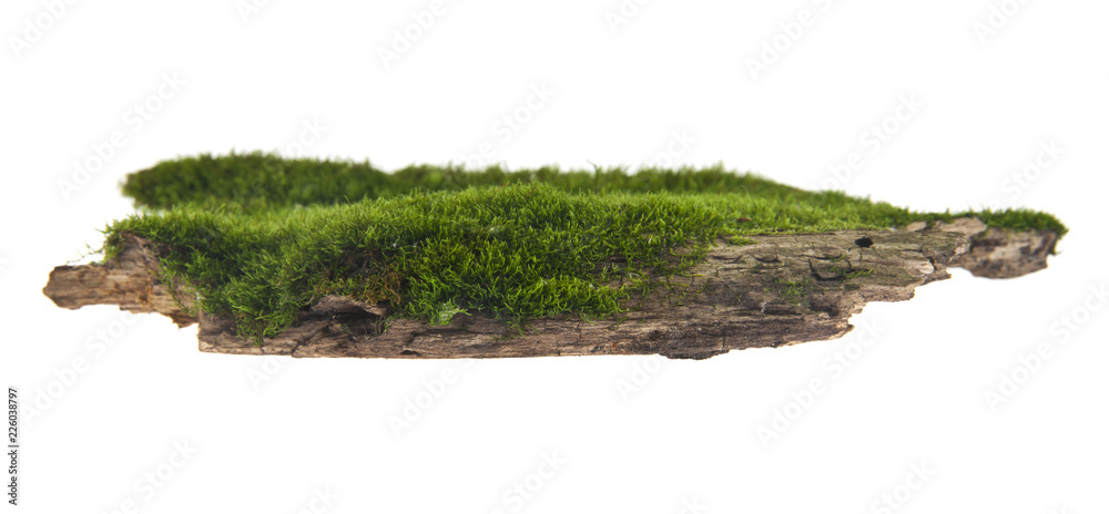 green moss on a tree isolated on a white background