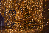 Christmas tree and decoration in the outside, evening view.