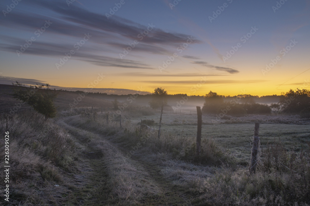 country road among fields and meadows. landscape picture resembling Italian Tuscany. Autumn-Poland,