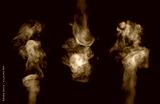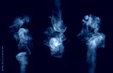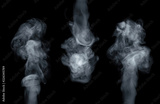 Fog or smoke set isolated on black background. White cloudiness, mist or smog background.
