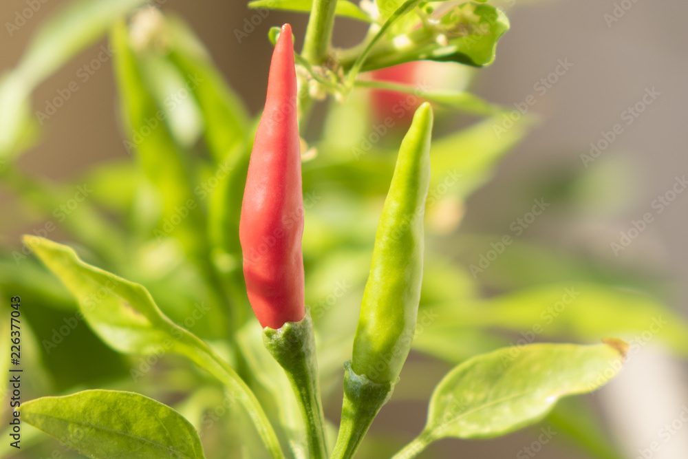 Red and green pepper in vegetable garden, chili, hot pepper, red pepper. Capsicum. The ingredients used in various types