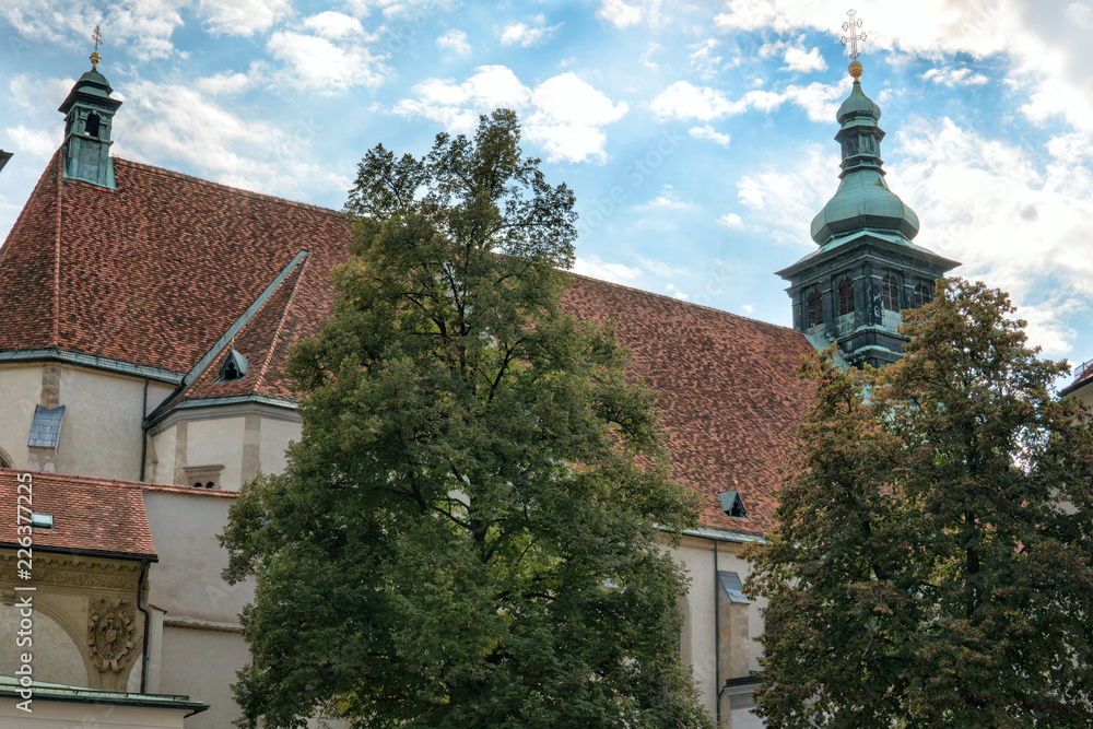 Graz. Austria. View of the Church of St. Catherine and the Church tower in Graz