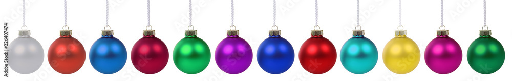 Weihnachten Weihnachtskugeln Banner Farben Kugeln Dekoration in einer Reihe Freisteller