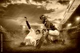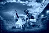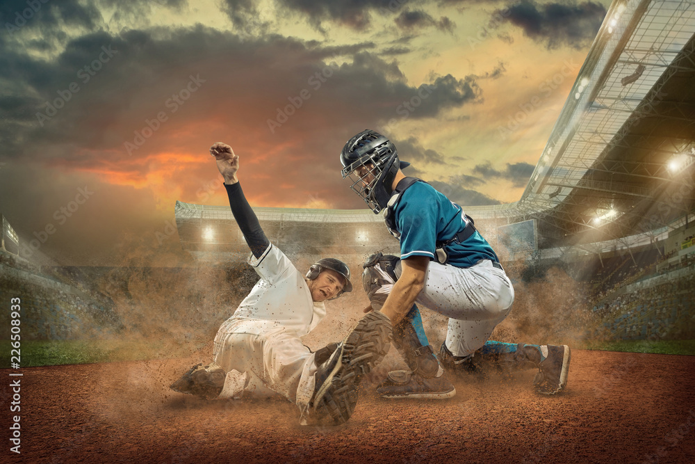 Baseball players in action on the stadium.