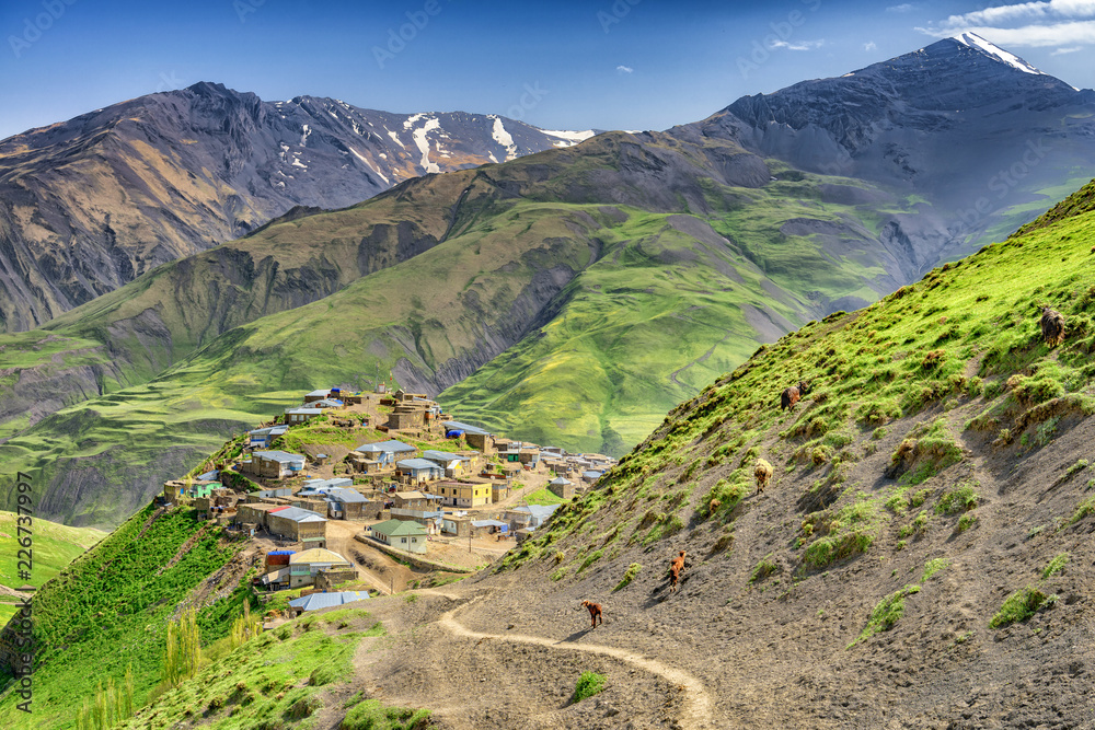 Beautiful mountains and hills in the north of Azerbaijan near Quba in the village Khinaluq