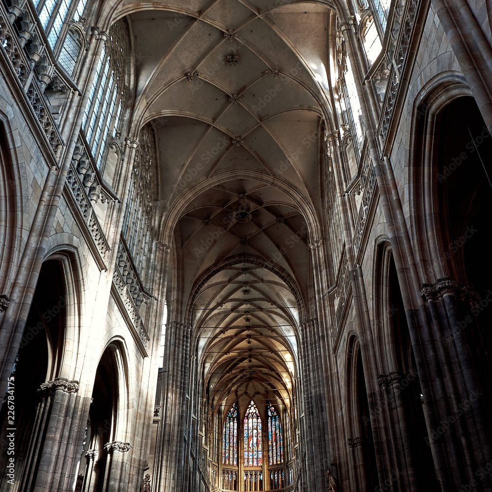 Beautiful interior of the St Vitus Cathedral in Prague, Czech Republic
