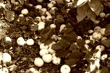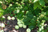Young ripe apples fell to the ground. The harvest cropped apples in the garden.