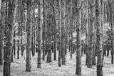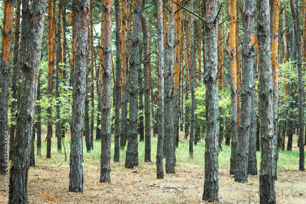thick pine forest. trunks of coniferous trees, texture for the background.
