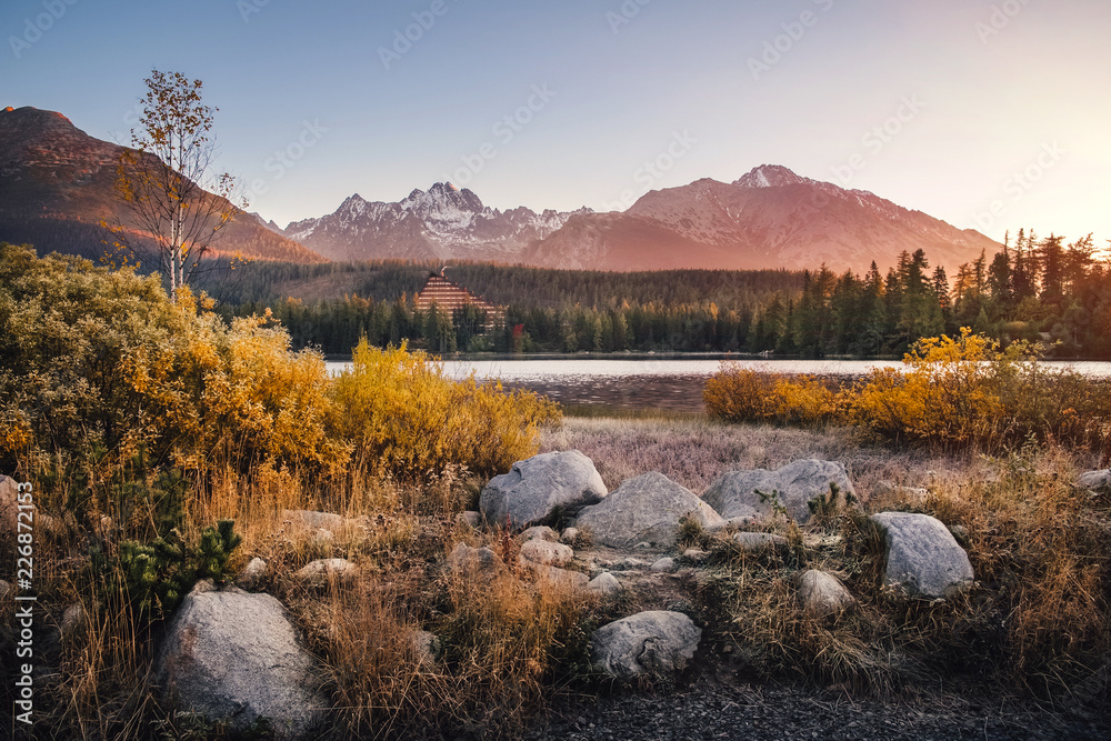 Autumn mountain and Strbske pleso lake in High Tatras, Slovakia