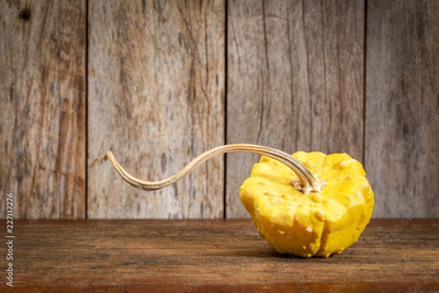 ornamental gourd on rustic wood