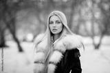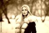 Young woman in fur coat standing outside