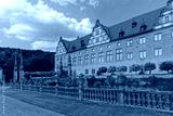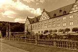 Weikersheim , Germany - view of the palace with a decorative, stone fence.