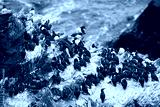 Guillemot - Uria aalge, black and white sea bird from ocean coasts and reefs, Atlantic ocean, Shetlands, Scotland.