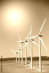 Field with wind power plants.