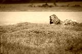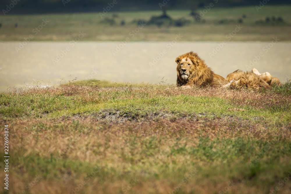 Group of lions in the grass ready to hunt in National Park of Ngorongoro, Tanzania