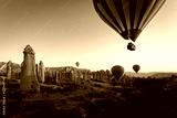 View from above the Cappadocia Valleys with balloons. Turkey.