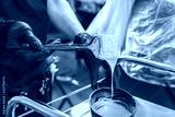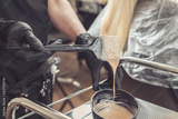Hair stylist hands preparing a dye in a container
